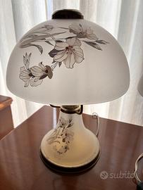 Coppia Lampade Comodino Vintage Vetro Fiorato