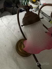 bellissima e originale coppia di lampade da parete in metallo e vetro rosa antico,