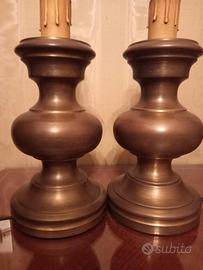 Elegante coppia di lampade da tavolo ( abat jour), stile classico. Ideali per camera da letto, come abatjour sui comodini, oppure in salotto, per creare punti luce dove desiderate. Base in metallo brunito e satinato. Dotate di paralume in satin, con passamaneria ( produzione artigianale made in Italy). Attacco E14..Perfettamente funzionanti. Ottime condizioni. Misure ( senza il paralume): altezza cm 32 diametro della base di appoggio cm 13. Si trovano a Milano città. RITIRO E TRASPORTO A CARICO DELL'ACQUIRENTE.