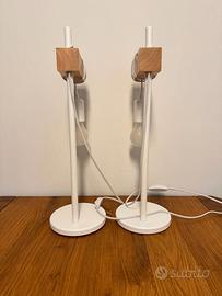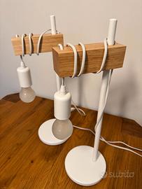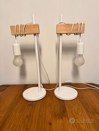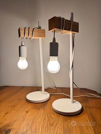 Coppia di due lampade da tavolo di design, con struttura in metallo bianco e legno naturale. Dimensioni 17,5cm x 15,5cm x 50cm Lampade E27 LED Max. 10W Consegna a mano Prato e dintorni