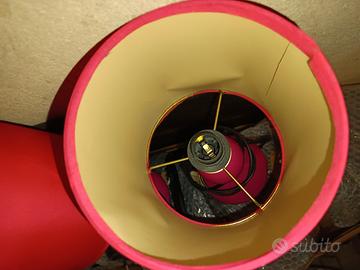 Vendo coppia di lampade da tavolo coordinate, colore rosa/fucsia, stile moderno/pop.