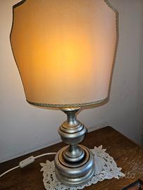 vendo coppia lampade da comodino base legno tornito decoro argento