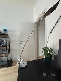 Lampada da tavolo ad arco coordinata, stessa linea di design. La lampada è completa ma da revisionare perché manca il portalampada e non è stato possibile testarne il funzionamento.