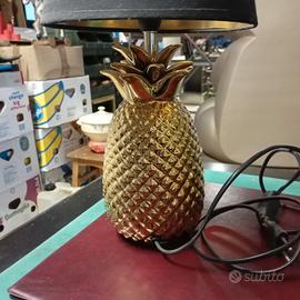 Vendo come da foto coppia lampade a forma di ananas in ceramica dorata, paralume in stoffa nero. Sono perfette e funzionanti. misure altezza 41 cm. larghezza 20 cm. per info chiamare Simone 3383144618