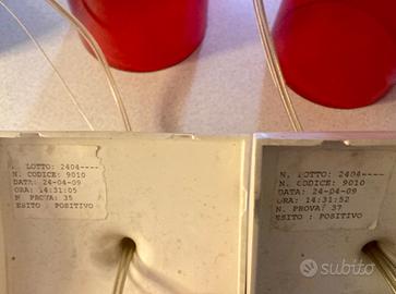Due lampade a sospensione di design del brand Kartell, modello Easy, funzionanti e completi di tutti i pezzi e le vite per il fissaggio, colore rosso. Incluse due lampadine.