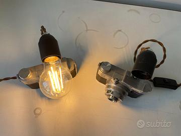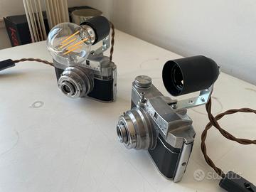 Vendo coppia di lampade realizzate con macchine fotografiche vintage marca Koroll, complete di porta lampadina (E27), cavo elettrico intrecciato e rivestito con tessuto, interruttore (on/off) e spina elettrica piatta da 16A.