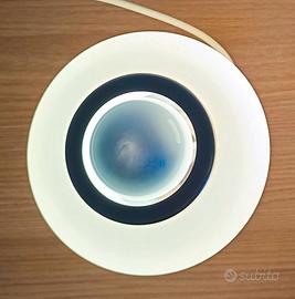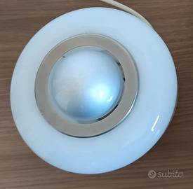 Coppia di lampade da tavolo / comodino / abat jour space age vintage design modernariato base in metallo cromato diffusore in vetro opalino bianco attacco lampadina grande E 27 (lampadine NON incluse) Altezza 16 cm ca. in ottime condizioni e perfettamente funzionanti viste e piaciute