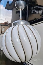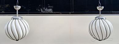 Coppia lampade d'epoca a sospensione VeArt Adolf Loos, in vetro opalino. Diametro circa 35 cm, altezza circa 50 cm. Prezzo riferito alla coppia. Spedizione disponibile. vintage, Artemide, VeArt, Adolf Loos, italian design, murano.
