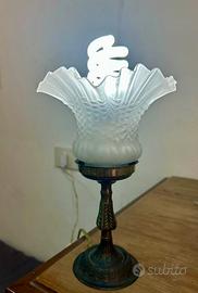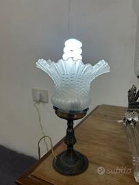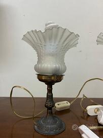 Coppia di lampade da tavolo vintage, vetro satinato e base in metallo.