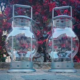 Vendo bellissima coppia di lanterne originali IKEA, ideali per arredare interni, balconi o giardini e creare un’atmosfera calda e accogliente. Modello non più commercializzato da anni, quasi vintage. Le lanterne presentano un design intramontabile che unisce lo stile industriale al fascino delle antiche lampade da marinaio. Sono realizzate in robusto metallo grigio e vetro trasparente sagomato. CARATTERISTICHE E MISURE: Altezza: 30 cm (modello grande, molto visibile) Diametro sfera in vetro: 12 cm Materiali: Struttura in metallo e corpo in vetro borosilicato Stato: Ottime condizioni, vetri integri, pulite e pronte all'uso Perfette per balconi o giardino, per decorare un angolo relax o per illuminare le serate all'aperto. Grazie al pratico manico superiore possono essere anche appese.