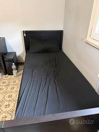 Vendo due letti IKEA a piazza singola con MATERASSI IN OMAGGIO. Dimensioni 90x200. Condizioni ottime, costruiti in legno nero. Cedo già smontati e con tutte le viti per il montaggio. Prezzo 100€ l'uno non trattabili.