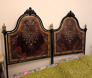Vendo coppia letti antichi in ferro battuto con testate decorate con madreperle e statuine. Smontaggio e trasporto a cura dell’acquirente
