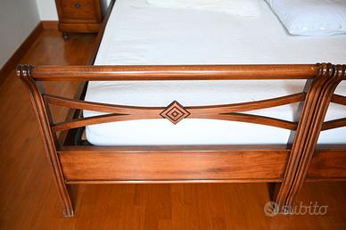Coppia letti singoli in legno, accoppiabili per formare letto matrimoniale. Primi ‘900, in ottime condizioni, bellissimi, con dettagli originali. Completi di materassi, cuscini e coprimaterasso.