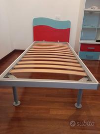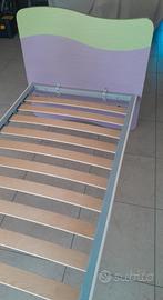 Vendo, anche separatamente,coppia di lettini per camerette 80x190. Testiere in legno verde/lilla e azzurro/rosso. Struttura in ferro effetto legno bianco con rete a doghe integrata di ottima qualità.