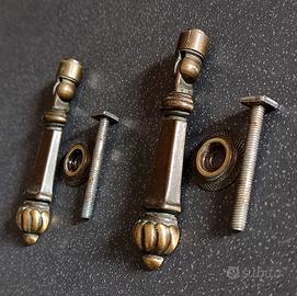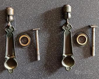 Coppia di maniglie snodate, squadrate in ottone per mobili antichi.