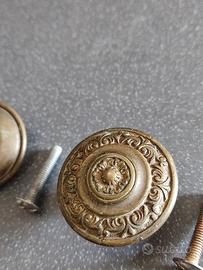 Coppia di maniglie fisse tonde in ottone per mobili antichi. diametro: 3,5 cm altezza: 2,5 cm peso cadauno: 37 g