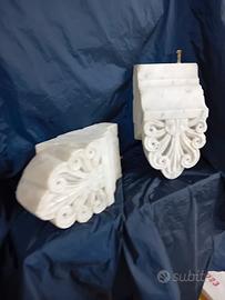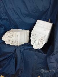 SALVE, MI CHIAMO CIRO, PROPONGO UNA COPPIA DI MENSOLE IN MARMO STATUARIO VENATO, CON RICCI ED USURE DEL TEMPO. LE MISURE DI INGOMBRO SONO CIRCA CM. 24 X CM. 13, SPESSORE CIRCA CM. 10.