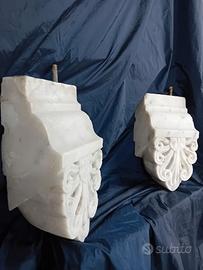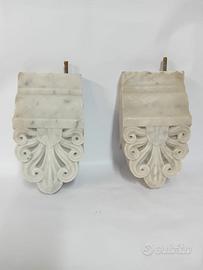 SALVE, MI CHIAMO CIRO, PROPONGO UNA COPPIA DI MENSOLE IN MARMO STATUARIO VENATO, CON RICCI ED USURE DEL TEMPO. LE MISURE DI INGOMBRO SONO CIRCA CM. 24 X CM. 13, SPESSORE CIRCA CM. 10.