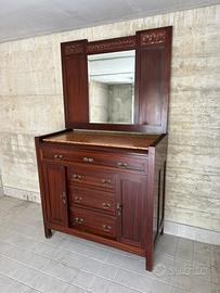Comò con specchiera mobili in legno massello struttura solida con piano di marmo,specchiera originale integrata presente intagli decorativi floreali nella parte superiore , è composto da cassetti centrali e vani laterali con sportelli molto capienti e funzionale restauro già effettuato, pronto all’uso