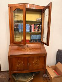 Ante superiori a vetro piombato, ripiani interni e ribalta centrale utilizzabile come scrittoio.