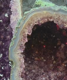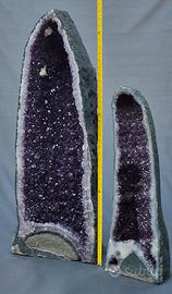 ATTENZIONE: Annuncio valido solo fino a Martedì sera. Per motivi di inserimento in asta internazionale (Catawiki), l’oggetto verrà rimosso dalla vendita privata Martedì alle ore 20:00. Oltre tale termine, il pezzo sarà acquistabile solo tramite asta con i relativi costi di commissione e spedizione internazionale. DESCRIZIONE ESECUTIVA Proponiamo in vendita esclusiva una coppia coordinata di Cattedrali di Ametista di straordinaria qualità cromatica, grado Deep Purple (Uruguay/Brasile). Pezzi selezionati per l'alto valore d'arredo e collezionismo. DETTAGLI TECNICI: Cattedrale "Major" (Grande): Altezza 100 cm circa, peso stimato 70 kg. Caratterizzata da rari "Fiori di Calcite" bianca all'interno della cavità. Base autoportante in cemento tecnico per massima stabilità. Cattedrale "Junior" (Piccola): Altezza 71 cm, peso 26,3 kg. Gemella cromatica, perfetta per creare una composizione simmetrica in ingressi o saloni di rappresentanza di alto livello. STATO DI CONSERVAZIONE: I pezzi sono integri, puliti professionalmente e privi di scheggiature sulle punte dei cristalli. La "buccia" esterna in basalto e agata è solida e ben definita. VANTAGGIO ACQUISTO DIRETTO (Entro Martedì): Possibilità di visione e ritiro a mano in provincia di Vicenza. Nessuna commissione d'asta applicata. Risparmio immediato sulla logistica di spedizione. PREZZO PER LA COPPIA: € 9.800 Trattativa rapida riservata a seri interessati. Data la natura degli oggetti e l’imminente passaggio all’asta, non si accettano permute o offerte al ribasso non congrue.