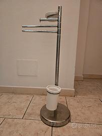 coppia in acciaio per arredare il bagno, comodo portasciugamani a 3 stecche, una un poco inclinata ma ottima, e porta carta igienica sapone e vasetto per wc . usato ma con una bella lucidata come nuovo!!