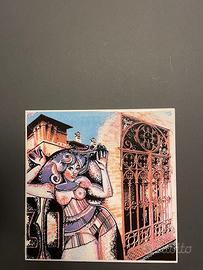 Stile riconoscibile dell’artista: segno deciso, atmosfera sospesa tra sogno e memoria, forte richiamo all’arte grafica contemporanea italiana.