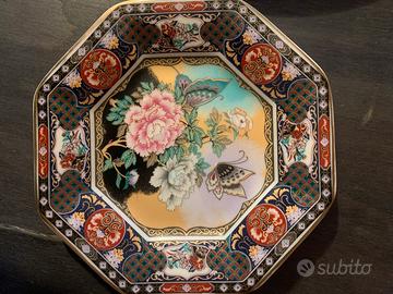 Splendida coppia vecchi piatti da bellezza fine porcellana originale giapponese, decoro eccezionale. Perfetti. Diam. Cm. 26 rotondo e cm.16 esagonale.