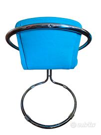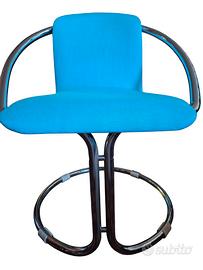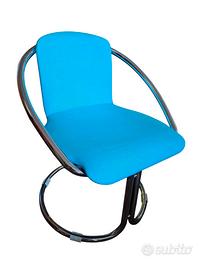 Bella coppia di poltroncine design italiano anni 60, originali, telaio in acciaio rifoderate con tessuto di cotone turchese, in ottime condizioni, comodissime! larghezza cm. 50 profondità cm. 57 altezza totale cm. 76 altezza della seduta cm. 45. Uniche