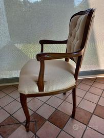 Coppia poltroncine in noce intarsiato e tessuto panna. Buono stato. Non separo, da ritirare a Stra (Ve).
