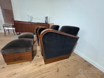 Coppia poltrone Art Deco con poggiapiedi, acquistabili anche separatamente.
