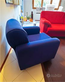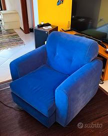 Vendo elegante poltrone blu in tessuto tipo velluto, usata ma in ottime condizioni.