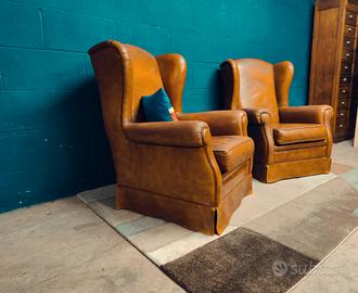 Coppia Poltrone in vero cuoio inglese stile Chester stile Chesterfield Wingback Queen Anne Bergere originale inglese Poltrona e divani abbinati disponibili Misure: 90cm x 90cm x 110cm Spedizione disponibile Per info 3246236227