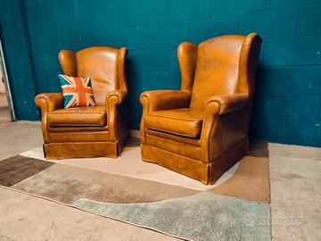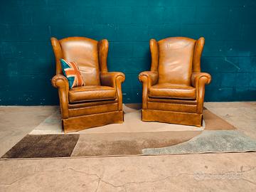 Coppia poltrone Chester Chesterfield vero cuoio uk