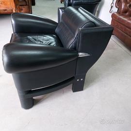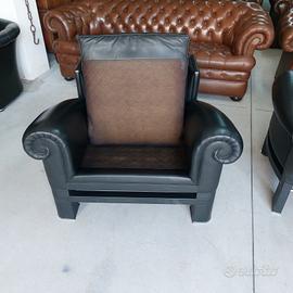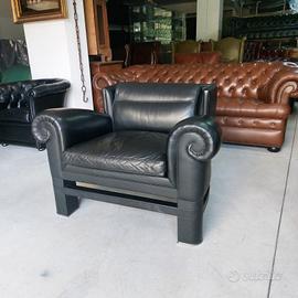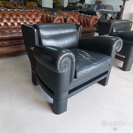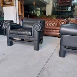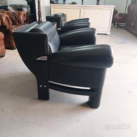 Coppia di poltrone in vera pelle nera firmate PIRELLI & C. Real Estate.