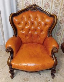 Coppia Poltrone della "Signoretto" in pelle marrone chiaro, con lavorazione capitonné e struttura in legno massello, in condizioni di pari al nuovo, tenute in sala inutilizzate. NB: Il prezzo si riferisce alla coppia. * Solo ritiro di persona.