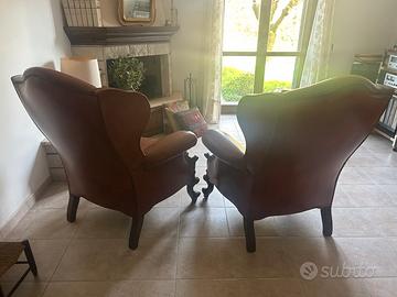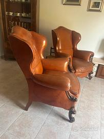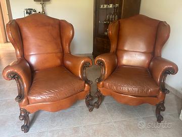 Coppia poltrone in vera pelle stile classico