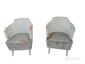 Vendo coppia di poltrone Jules di Moroso da restaurare con certificato di autenticità, scheda prodotto e campioni stoffa originali. Seduta e struttura solida, da rifare parte imbottitura dei fianchi e rifoderare. Nuove costano circa 3.000 euro. Spedizione a carico acquirente oppure consegna a mano zona Perugia. Può essere interessante per un artigiano che le può sistemare in economia per rivenderle.