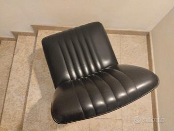 Vendo coppia di sedie/poltroncine vintage anni ’60–’70 in ottime condizioni, con pelle nera integra e perfetta (senza crepe né usura). Base girevole in metallo a 4 razze.