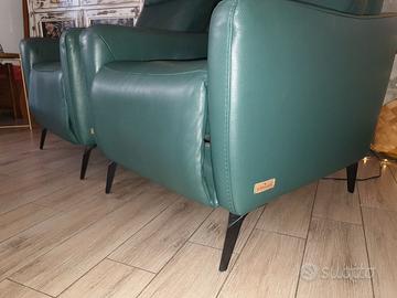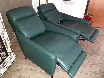 Usate pochissimo,due anni di vita,Poltrone relax in pelle con movimento elettrico con cavo,color verde bottiglia,Poltronesofà