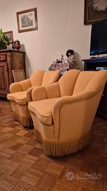 Vendo splendida coppia di poltrone vintage anni ’70 color senape, complete di frange decorative originali.