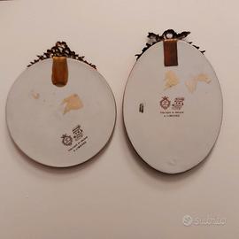 Coppia di splendide porcellane artistiche Limoges con finiture dorate ed elemento decorativo di metallo sulla parte superiore. La rotonda riporta una riproduzione di un dipinto di Fragonard titolo "la liseuse" dipinto del 1776, l'ovale la riproduzione di un dipinto di Sir Thomas Lawrence titolo "The red boy" dipinto del 1825