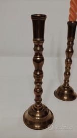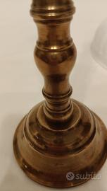 Coppia di porta candele dell'inizio 1800, in ottone, molto eleganti, forati per fare passare il filo elettrico e trasformarli in originali portalampade.