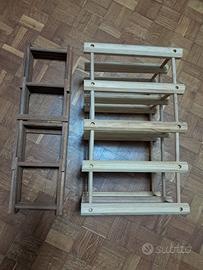 Vendo due portabottiglie in legno colore naturale, 8 scomparti ciascuno, uno richiudibile come da foto. 10 euro ciascuno piú eventuale spedizione.