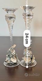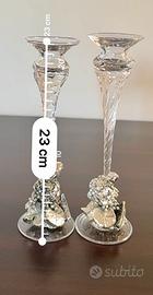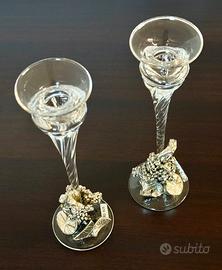 Coppia Portacandele Vintage in Cristallo e Arg 925