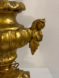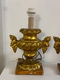 Antica coppia di porta palme in legno dorato a foglia, trasformati in lampade (reversibili senza compromettere nulla) - epoca 1700 / inizi 1800