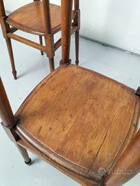 • Condizioni: Pezzi originali d'epoca. Strutturalmente solidi. Presentano i naturali segni del tempo, inclusi piccoli fori di tarlo (trattati/inattivi) e una patina autentica sulla superficie dei ripiani (segni circolari dovuti all'appoggio dei vasi) che ne certifica l'antichità.