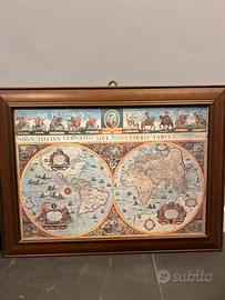 Vendo coppia di quadri decorativi con riproduzioni di mappe del mondo antiche, ispirate alla cartografia europea tra XVI e XVII secolo.