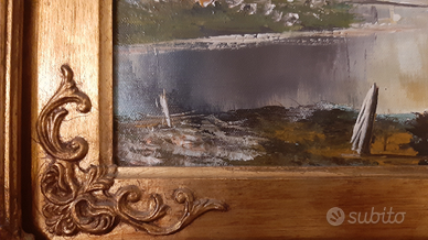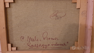 Due quadri di Corrado Mele, firmati e con certificato originale, rappresentanti paesaggio invernale e paesaggio con fiume. Cornice lavorata artigianalmente con passepartout e vetro protezione. Visibili a napoli, zona chiaia. 35 euro ciascuno oppure 60 entrambi.