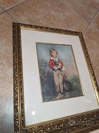 Vendo bellissima coppia di riproduzioni d'autore di grande formato, montate su cornici importanti e imponenti in stile barocco dorato. Le opere raffigurano due dei soggetti più dolci e famosi della pittura europea: "Boy with Dog" (Ragazzo con cane) di James Alexander Simpson: Celebre ritratto d'epoca, capolavoro di espressività e realismo. "Ragazza con cesto di fiori" (Fanciulla con fiori) di Pierre-Auguste Renoir: Un classico dell'impressionismo, famoso per la luminosità dei colori e la delicatezza del soggetto. Dettagli dell'offerta: Autori: James A. Simpson e Pierre-Auguste Renoir. Cornici: Lavorate con fregi a rilievo e finitura dorata. Dimensioni esterne 41 cm x 35 cm. Sono cornici di grande impatto che arredano da sole una parete. Condizioni: Il quadro di Simpson è completo di vetro protettivo. Il quadro di Renoir è senza vetro (ideale per ammirare la stampa senza riflessi). Stile: Perfetti per ambienti classici, eleganti o Shabby Chic. Per ulteriori foto e informazioni non esitate a contattarmi